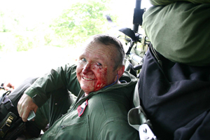 From Bill Carrothers: I'm recuperating from another of those '75 firsts: I'm pretty sure I'm the oldest one of us to punch out of an aircraft, at age 53. I jettisoned a State Dept OV10 in April while flying in Colombia. I'm fully recovered and awaiting FAA approval to return to work . . . any day now. [See Extras, Below]