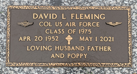 Col. (Ret) David L. “Dave” Fleming, age 69, of Ocala, Fla., slipped the surly bonds of Earth one last time and passed peacefully into the presence of his Lord on May 1, 2021. Dave was born in Cambridge, England, on April 20, 1952. He was the first born of three children to Maj. Gen. Lawrence Fleming and Margaret (Peg) Fleming. Dave was preceded in death by his parents and his sister, Margaret (Missy) McClelland. He is survived by his loving wife, Wanda; brother Patrick Fleming (wife Merlita); daughters Katie (husband Scott), Beth (husband Cory); and 7 grandchildren. Following graduation from the Academy, Dave served as a weapon systems officer in the RF-4C aircraft in both the U.S. and Pacific before receiving his pilot wings in 1979. After pilot training, he flew the F-111D and F-111E aircraft in the U.S. and European theaters of operation. He was a command pilot with almost 3,000 hours of flying time. Following an Air Staff tour in the Tactical Division of the Directorate of Current Operations and a command tour flying the T-37B aircraft at the Euro- NATO Joint Jet Pilot Training Program (ENJJPT) in Texas, he was reassigned to the Pentagon as the NATO liaison officer to the chairman of the Joint Chiefs of Staff. In 1999, Col. Fleming was then assigned to the U.S. Military Delegation at NATO Headquarters in Brussels, Belgium. In this capacity, he was one of four senior service officers responsible for policy and operational matters requiring close inter-agency coordination in Washington for the NATO Alliance. In 2002, Col. Fleming completed his Air Force career serving as the director of Operations for the U.S. Air Force ROTC program. In this capacity, he was responsible for the development and execution of all training and education programs for 144 AFROTC detachments across the United States. Dave retired in 2004 after more than 30 years of active-duty military service. He began a second career in the oil and gas industry with FMC Technologies in Houston, Texas, as the project services manager and operations manager for subsea oil production and exploration in the Gulf of Mexico. Dave continued his immense drive to succeed and always encouraged others to achieve their potential. He finally retired in October 2011 and moved to Scottsdale, Ariz. In Arizona, he began a small business selling and promoting light sport aircraft Dave was a devoted loving husband, father, Poppy, brother and friend. Each of us who knew him will remember his thoughtfulness, sense of humor, his loyalty and friendship. He never complained or dwelled on living with stage 4 cancer. He always had a positive outlook and continued through his illness to mentor others through the Survivor2Survivor Program with Bladder Cancer Advocacy Network (BCAN). His core belief was "service to others before self." He once told me, “cancer allows you to heal your life.” He lived each day as a gift. Though his humor, laughter and knowledge of single malts will be missed, his memories will continue with those who knew him. Dave left his footprints on many hearts through his life’s journey. Wanda, his wife | Checkpoints, September 2021