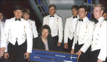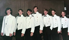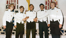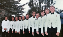 Gerry Micheletti is our representative to the Executive Board at the AOG. He is stationed here as a hockey coach. Jeff Graves is a basketball coach. Rich McAlister stayed to dive. The five football coaches are Bobby Thompson, Terry Young, Larry Fariss, Mike Mark, and Bill Murray. Minority recruiters are Phil Benjamin, Bill Osbourne, Kip Fong, and myself.