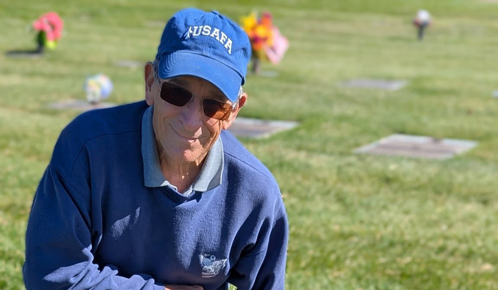 Perry Lamy Placing Flowers on Phil Pearce's Grave