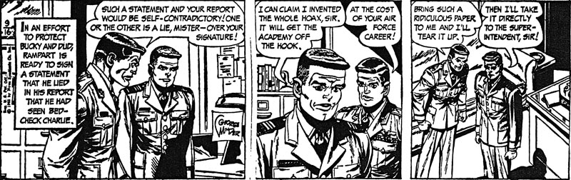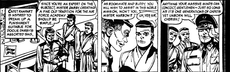 In 1963 George Wunder, artist and writer of the popular comic strip Terry and the Pirates penned a story about two fourth-class cadets at the Air Force Academy, Bucky Warbow, and Dudley Darby.