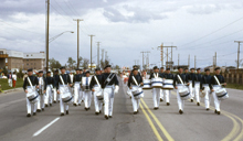 After an incredibly long parade route, I turned around and saw that our snare guys' hands were bleeding from all the ruptured blisters. Scott, Bill Halsey, and the rest had never thought about complaining. I wanted to hug 'em all. We'd come quite a ways. (August 2008)