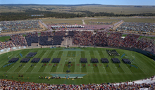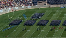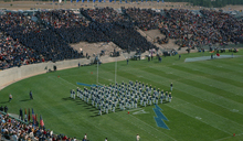 Gen. Simler was so impressed that he switched us in the Parade marching order. We got to go first, and the Longhorns got to march behind all the horses (you can guess what that means in terms of watching your step).