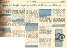My Dad, a career art professor, came up with the "Flight of Sound" name and initial logo. Greg Lykens did some very nice initial arrangement (working on a melodica, since he didn't have a piano). Did a lot of the horn teaching, being our best blower, and I growled at people who weren't serious enough about practicing, which led to Lykens elevating me to drum major for a couple of marching seasons.
