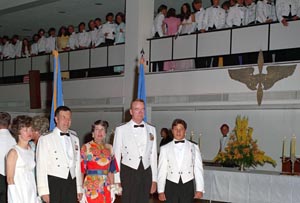 We had gone for punch and Steve was returning just as Wally arrives. Wally was informed of her name and that she was a cadet’s date, at which point I walked up and gave her the punch. He was not amused, and they followed us around for most of the time we were there. He even had a table pulled into the center of the floor so they could sit there while we were dancing!