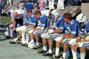 As I'm trotting back to the sideline with the noise of the fans still deafening my ears, I see Coach Issacson. He is fuming (and I think maybe even foaming at the mouth) that I changed the play called by the coaches! He grabbed me by the face mask on my helmet, dragged me to the bench, slammed me down and said some four-letter words that told me my playing days were over. As I turned around and looked at the cheering fans, I remember thinking, "If my playing days are over, what a great way to see them end!”
