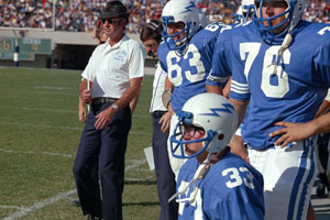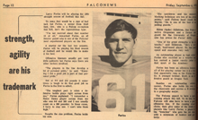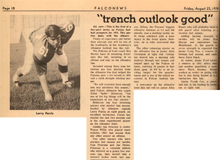 As you all know from watching those games on Saturday, we went right back to that which the Falcon offense had became famous (see title of this story). The upcoming pass play fooled no one and usually resulted in a desperation throw to avoid the sack by one or two blitzing linebackers. I'm sure it frustrated the fans. You can't imagine how it frustrated the players. Bob Farr and I were the Falcon wide receivers. At the completion of our pass routes we usually looked back only to find the quarterback running for his life.
