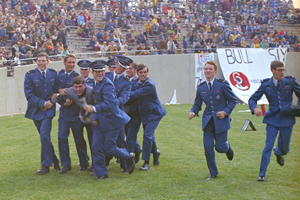 During one game . . . forgive me, I'm old and can't remember which one . . . the Falcon offense found its way to a first-and-goal situation from about the five yard line. Our quarterback, Mike Worden, called the play that Coach Terry Issacson (All-American, AFA '64, I believe) signaled in from the sideline (see first part of title for play called).
